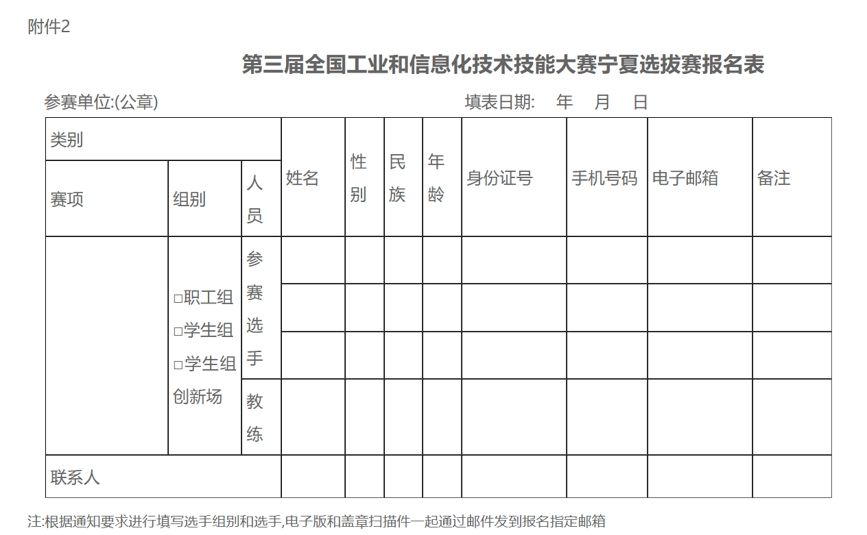 2.第三届全国工业和信息化技术技能大赛宁夏选拔赛报名表