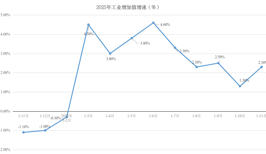 1-11月份,全县规上工业增加值累计同比增长2.3%。石嘴山市同比增长4.6%,大武口区同比增长2.9%,惠农区同比增长8.9%。