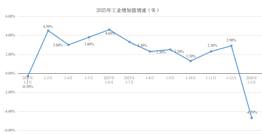 2026年1-2月份,全县规上工业增加值累计同比下降4.7%。石嘴山市同比增长2.2%,大武口区同比下降1%,惠农区同比增长12.3%。
