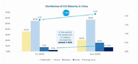 It also saw a significant increase in the proportion of organizations in China who were leaders, from the pre-COVID period (2.5% to 7.3%).