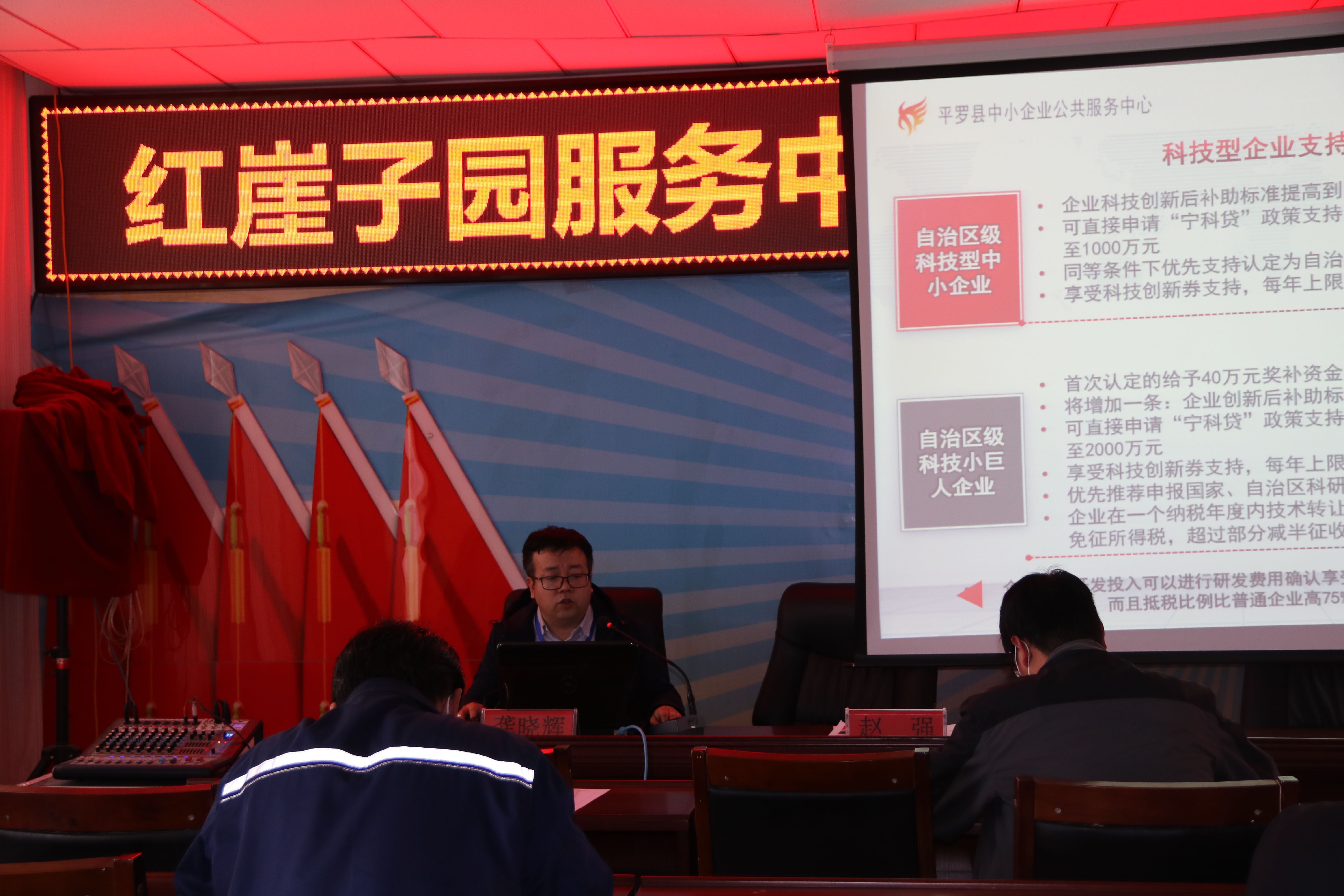 为进一步优化宁夏平罗工业园区营商环境,助力企业高质量发展,3月12日下午,由平罗工业园区管委会和平罗县中小企业公共服务中心共同举办的“平罗县中小企业公共服务中心红崖子园服务中心启动暨科技项目申报培训会”在红崖子园管委会三楼会议室成功举办。