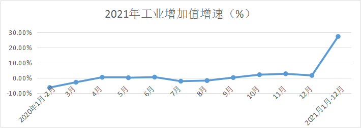 1-2月份,全县规上工业实现工业增加值同比增长27.4%,较同期提高33.8个百分点。全市工业增加值增长25.7%,大武口区增长16.2%,惠农区增长29%。