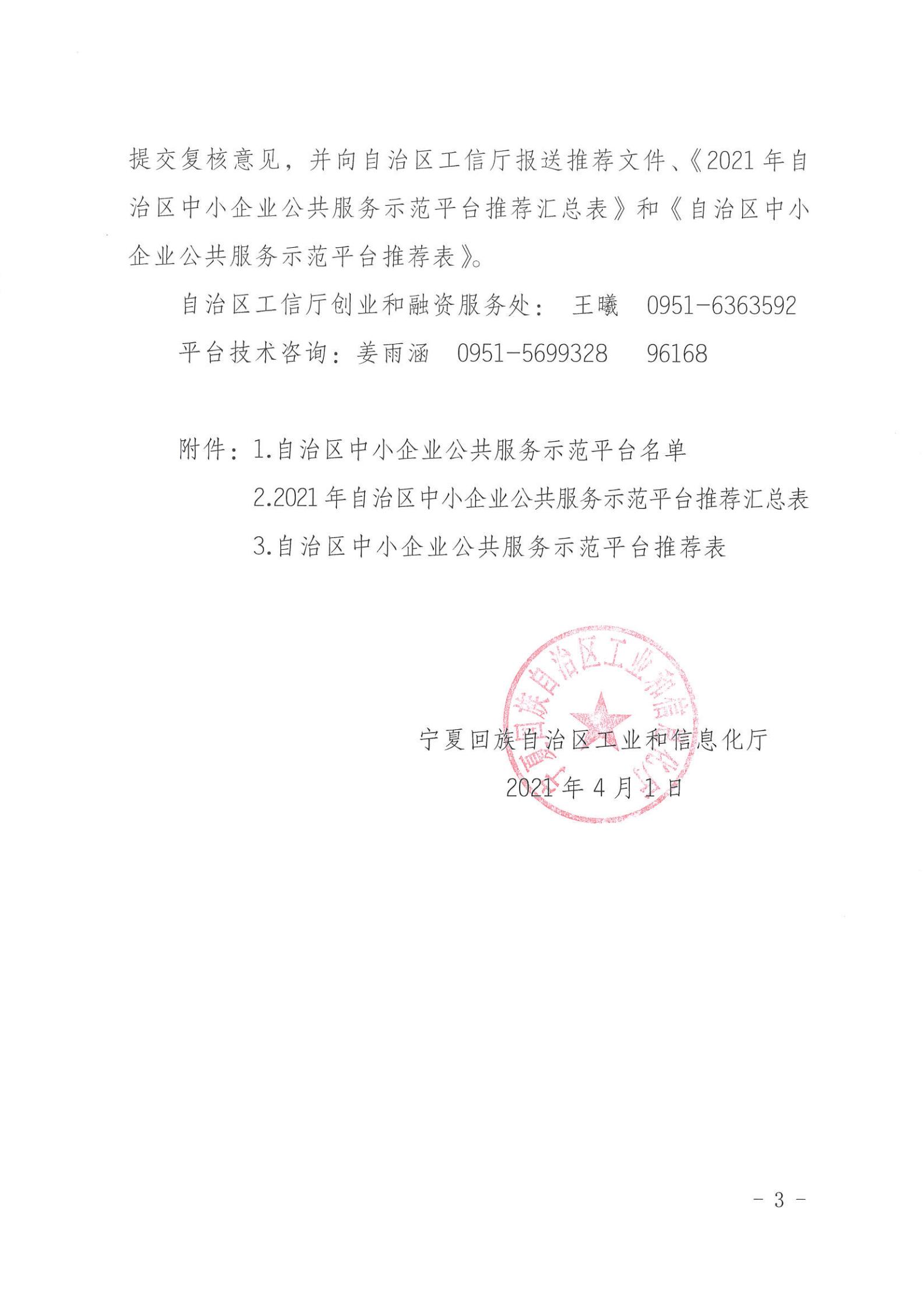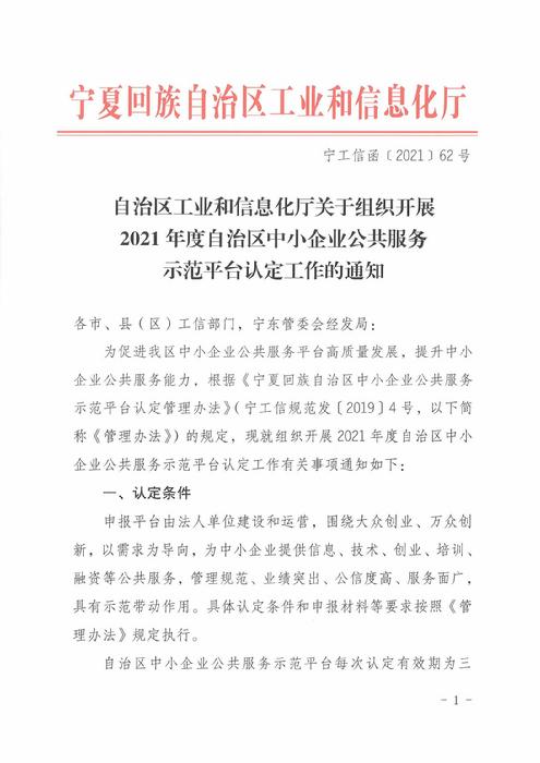自治区工业和信息化厅关于组织开展 2021年度自治区中小企业公共服务示范平台认定工作的通知