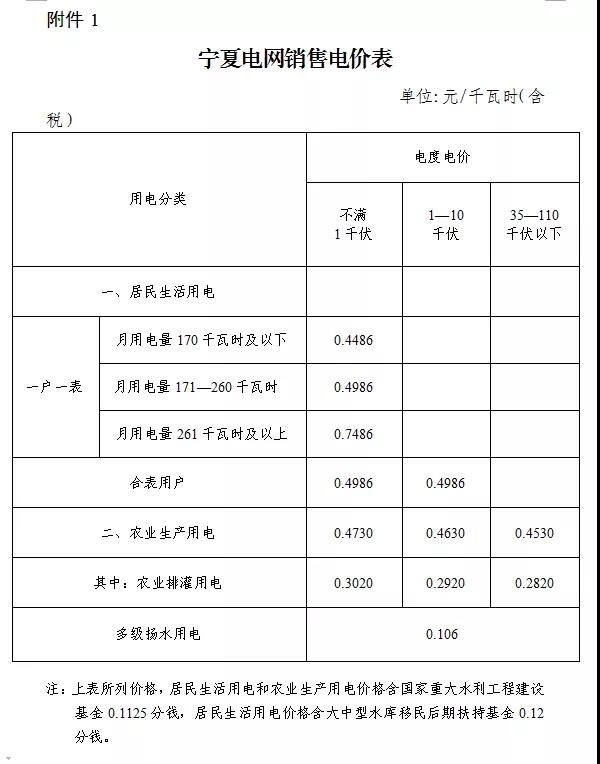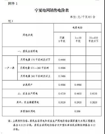 (一)取消我区工商业目录销售电价,仅保留居民、农业目录销售电价,调整后的宁夏电网目录销售电价详见附件。