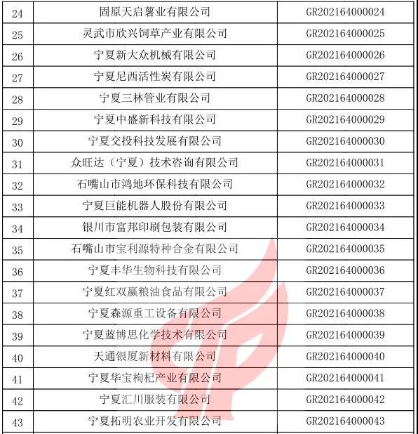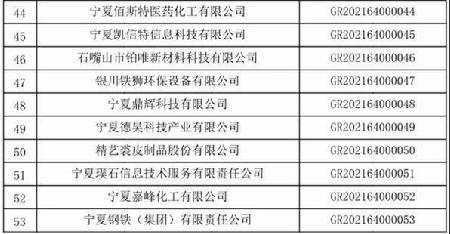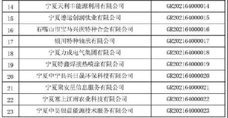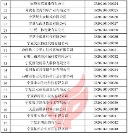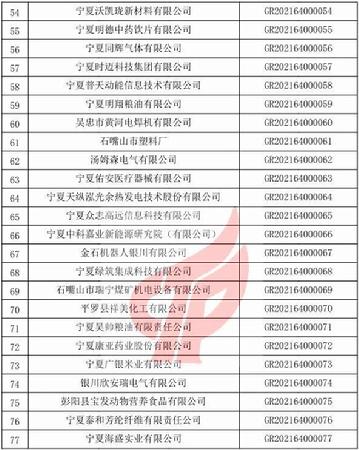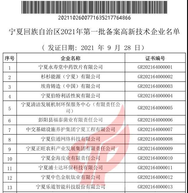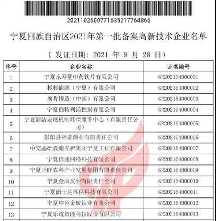 关于宁夏回族自治区2021年第一批备案高新技术企业名单的公告