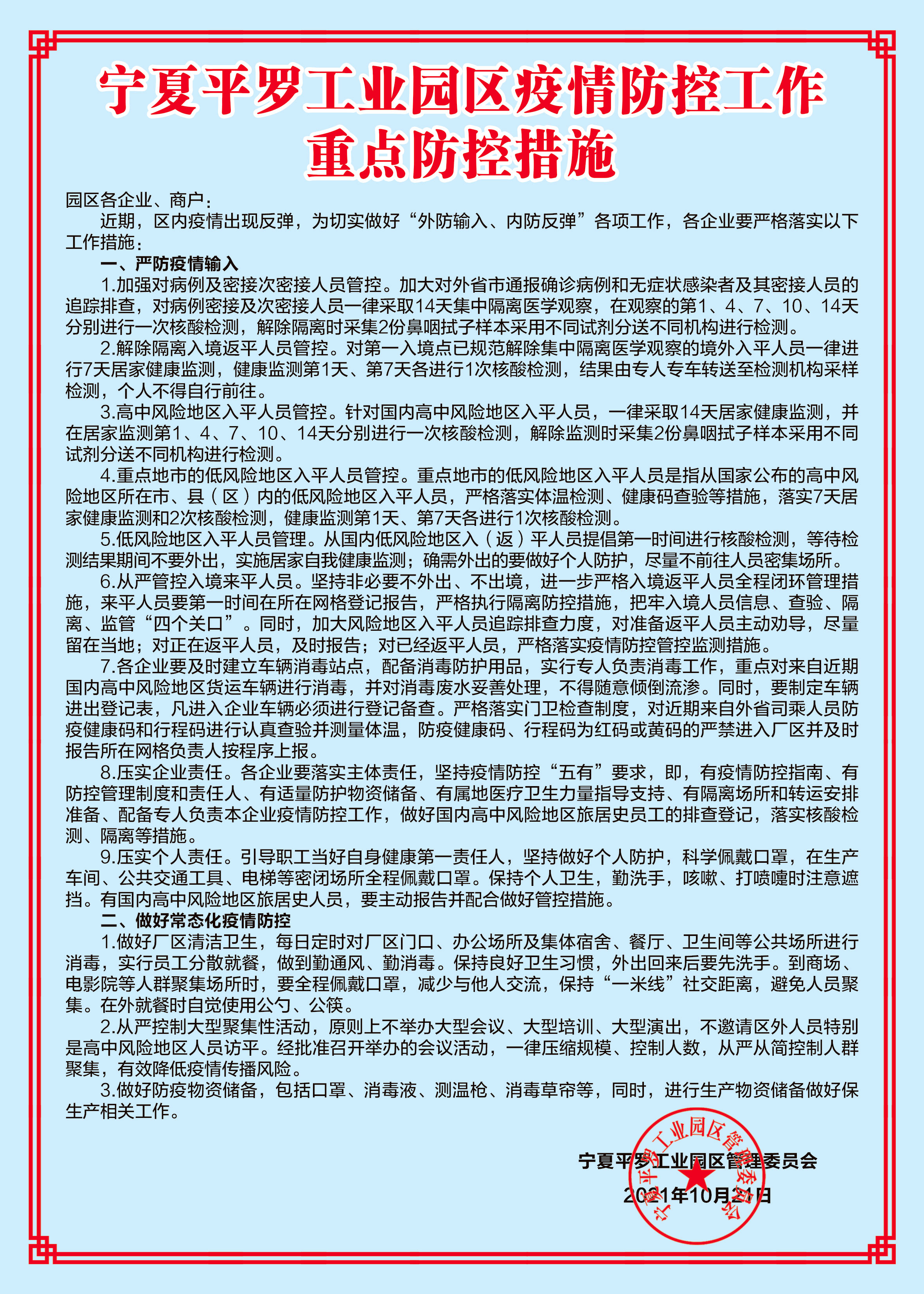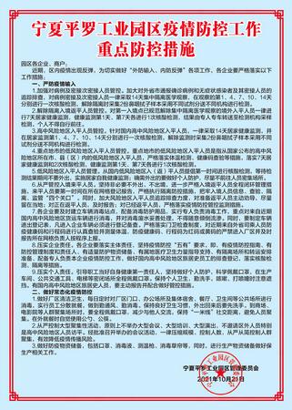 宁夏平罗工业园区疫情防控工作重点防控措施