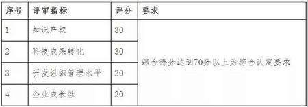 企业创新能力主要从知识产权、科技成果转化能力、研究开发组织管理水平、企业成长性等四项指标进行评价。各级指标均按整数打分,满分为100分,综合得分达到70分以上(不含70分)为符合认定要求。