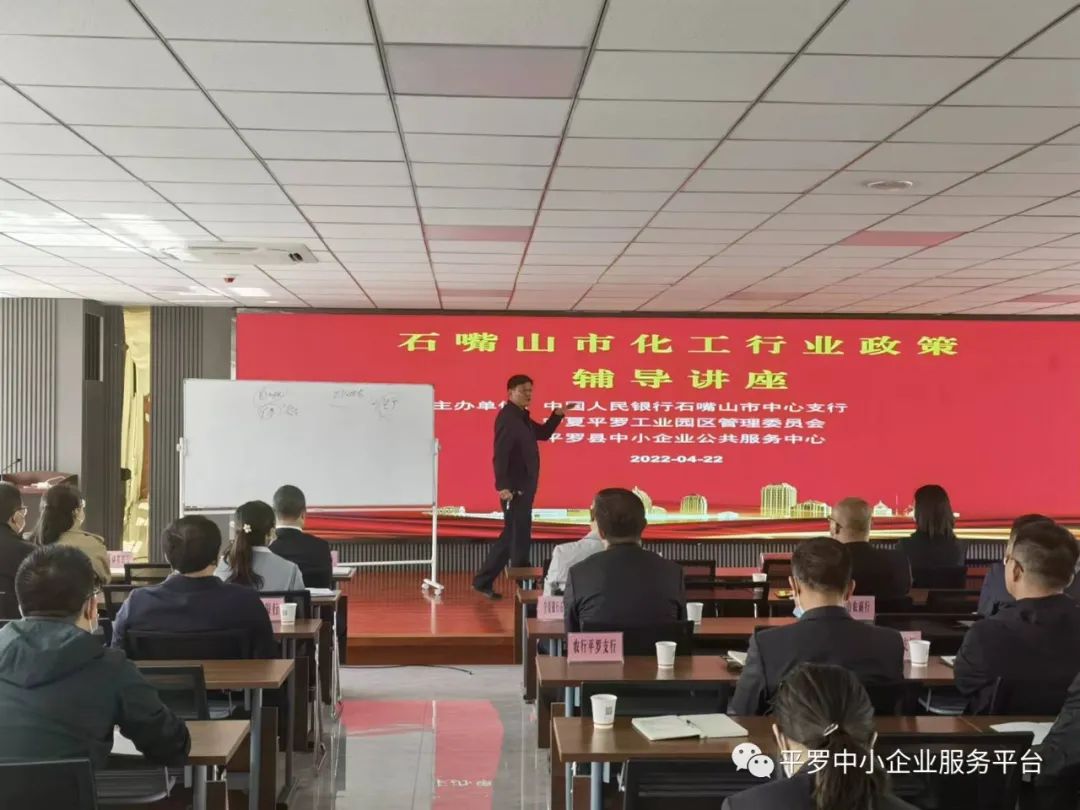 为深度拓展政银企合作交流渠道,4月22日,由中国人民银行石嘴山市中心支行、宁夏平罗工业园区管委会、平罗县中小企业公共服务中心共同主办的“石嘴山市化工行业政策辅导讲座”在宁夏平罗工业园区创客大厦顺利召开。共有石嘴山市辖区各国有银行、石嘴山银行石嘴山分行、宁夏银行石嘴山分行等24家金融机构共54位信贷负责人参加。