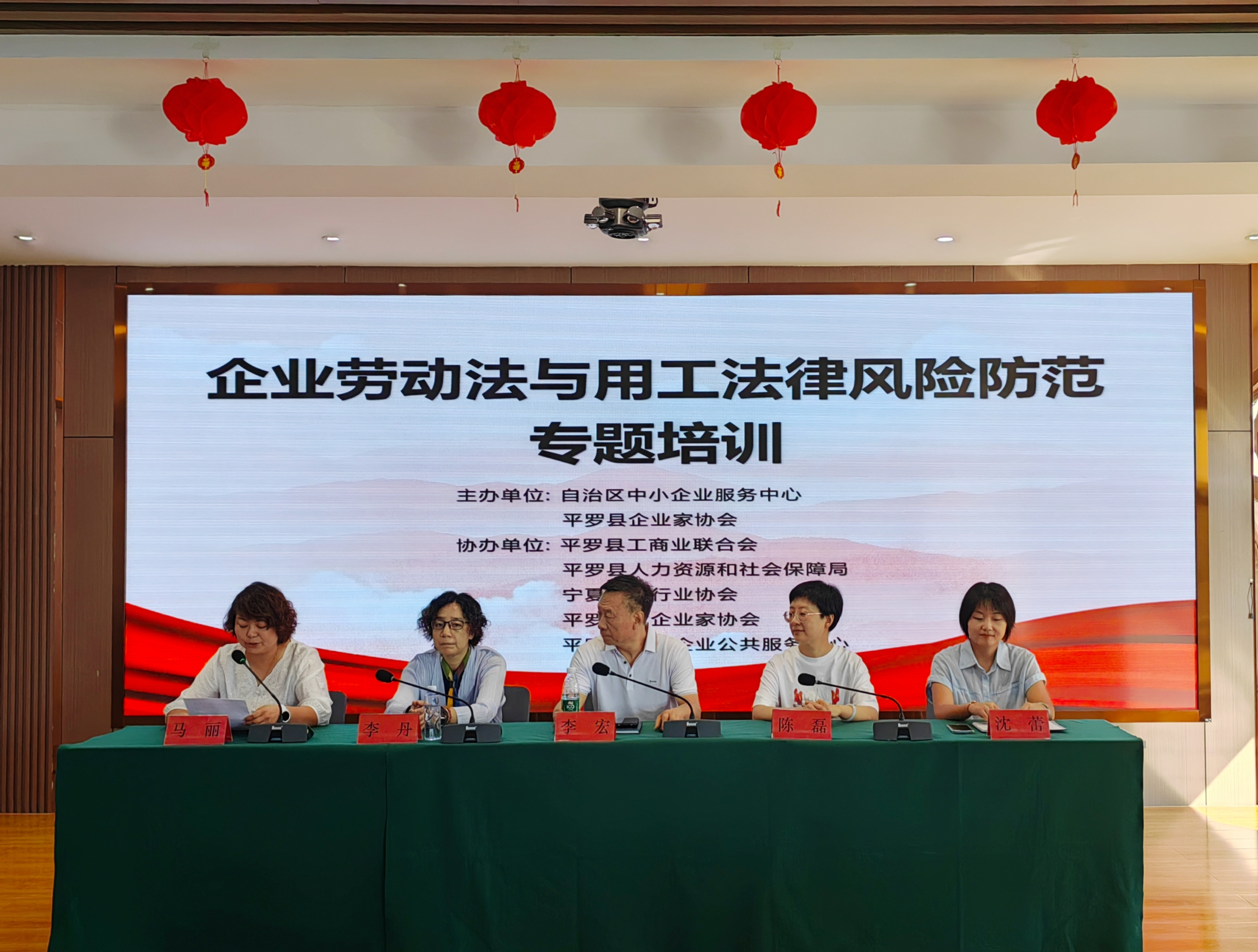 随着企业的不断发展,企业在劳动关系管理方面仍然存在难点和痛点,尤其是在劳动争议和纠纷等方面,如何运用法律法规进行妥善解决,是当前企业人资管理面临的主要问题。为进一步提高企业用工管理水平,降低劳动用工法律风险,增强用工风险防范能力,8月28日,由自治区中小企业服务中心、平罗县企业家协会、平罗县中小企业公共服务中心联合开展了“企业劳动法与用工法律风险防范”专题培训班。特邀国内知名法学教授李丹老师做专题授课,来自全县企业管理人员、人力资源等100余人参加了此次培训。本次活动也得到了平罗县人社局、县工商联的大力支持。