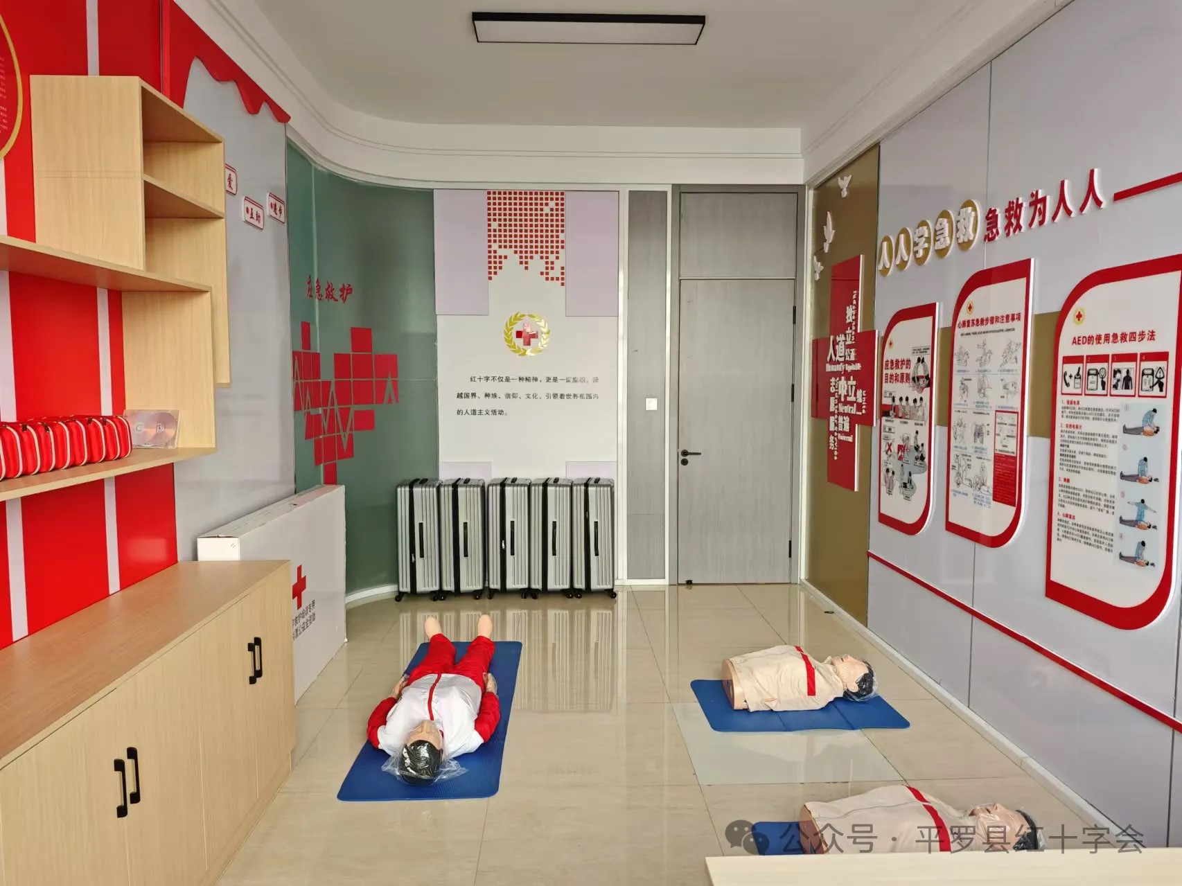 中小企业应急救护培训基地作为红十字会专业化应急救护培训阵地,积极响应政府高水平推进应急救护工作号召,面向县域内国有企业、民营企业、中小微企业、社会组织等各类人员开展应急救护知识和实操技能培训。基地内配备心肺复苏模拟人、AED训练机、急救包等各类教具及物品,教学设备齐全。