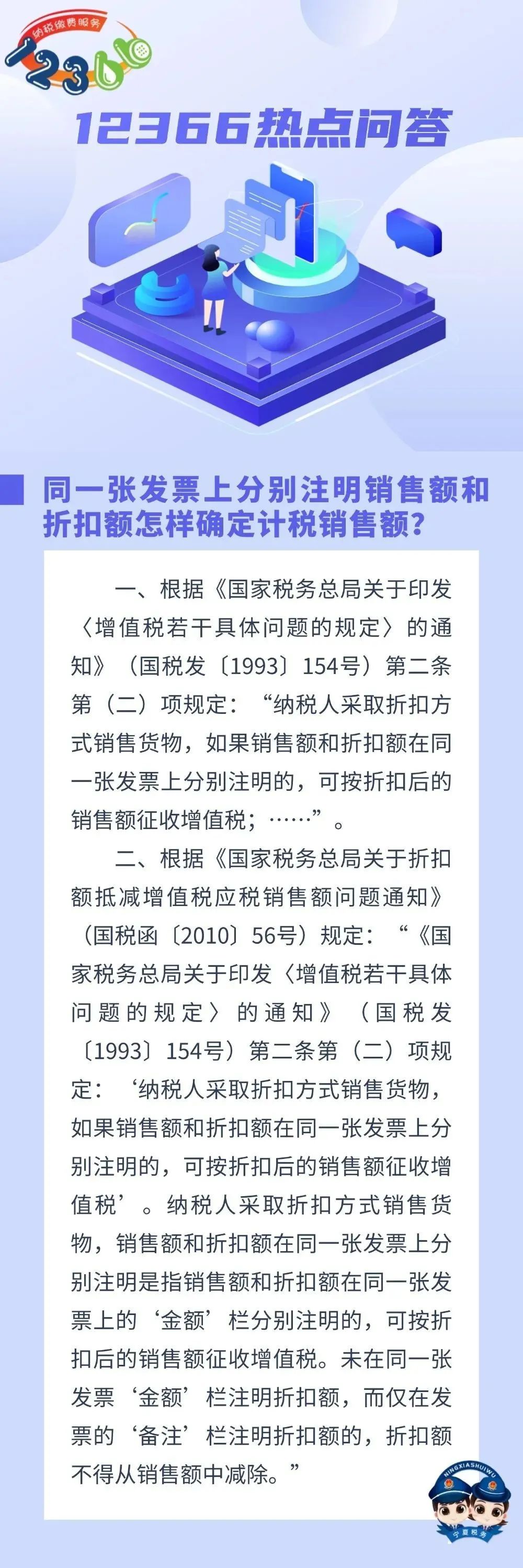 12366热点问答|同一张发票上分别注明销售额和折扣额怎样确定计税销售额?