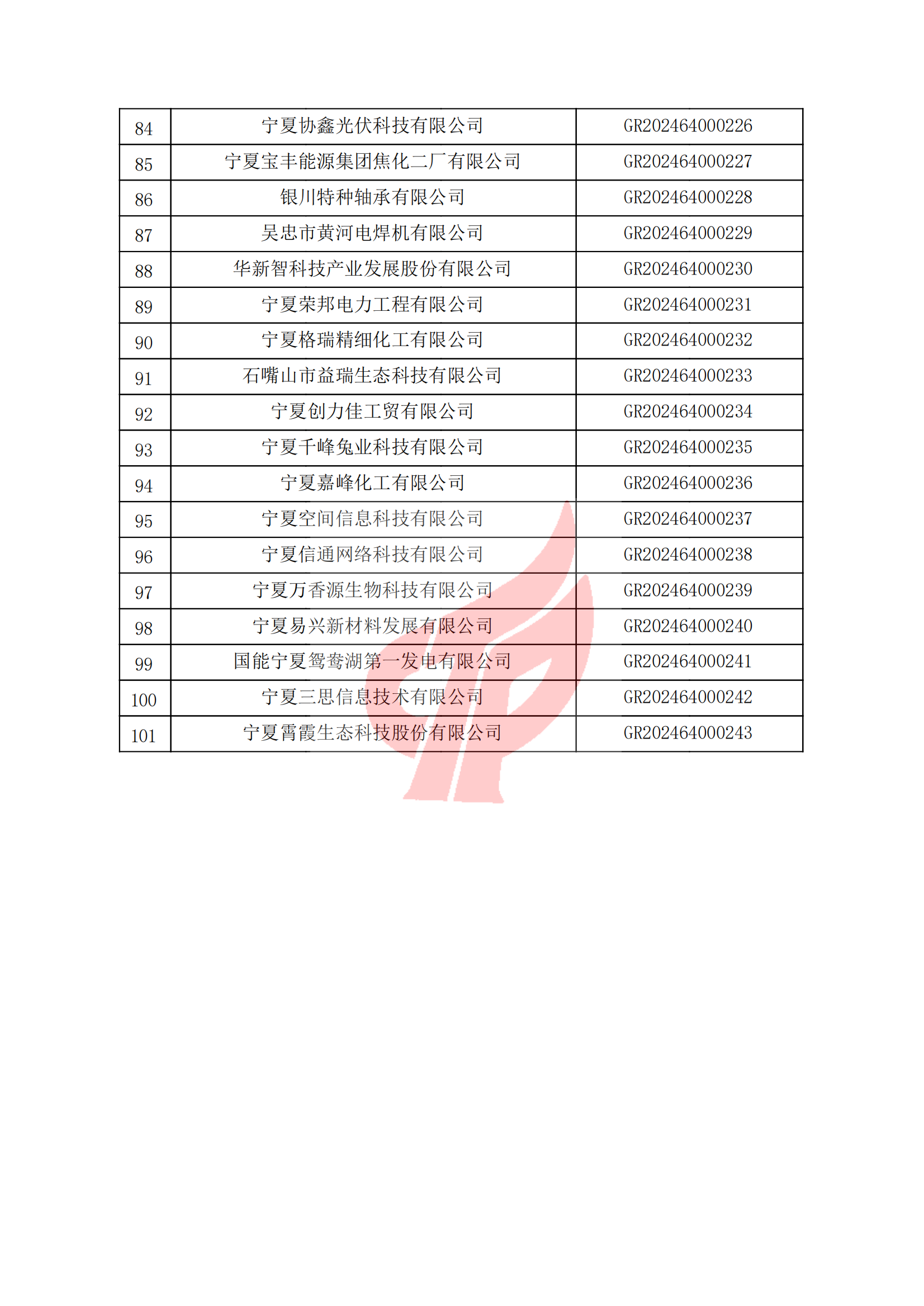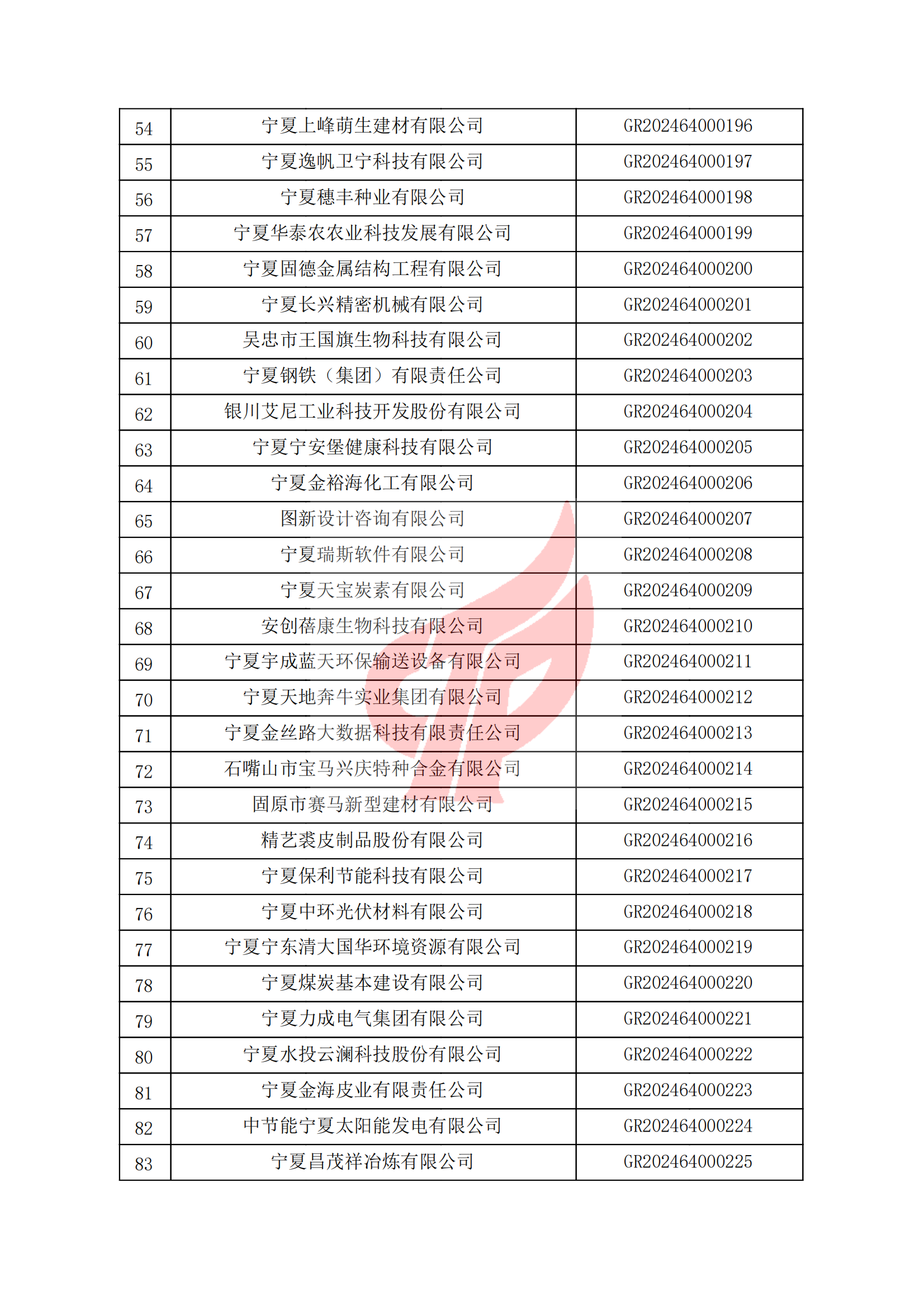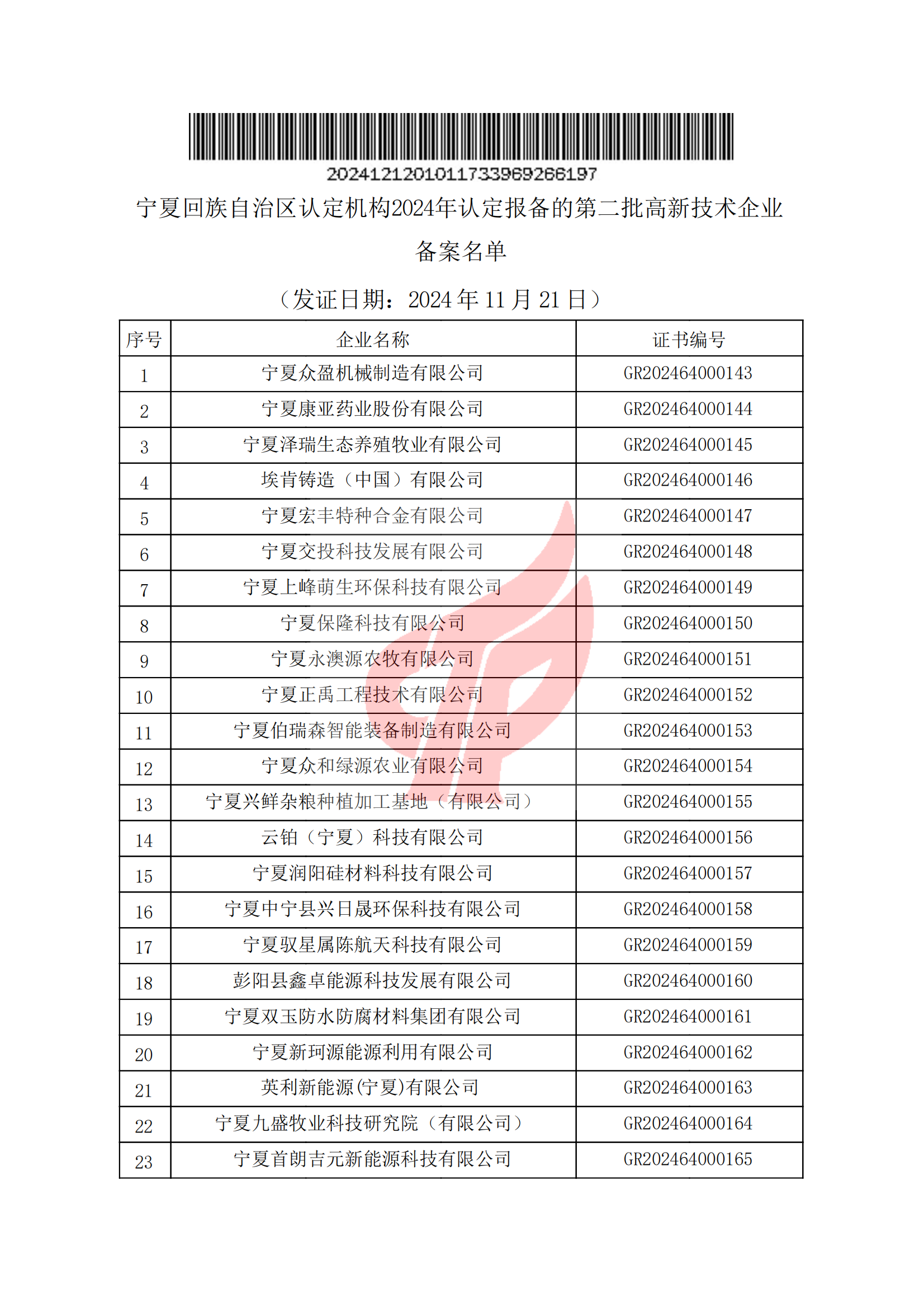 附件:宁夏回族自治区认定机构2024年认定报备的第二批高新技术企业备案名单