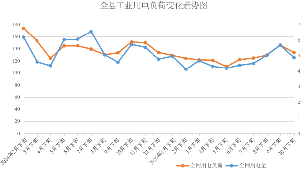 全网日均用电负荷133.47万千瓦,较10月中上旬上升1.82万千瓦,环比上升1.38%,同比下降11.62%;全网用电量4.87亿千瓦时,较10月中上旬上升0.13亿千瓦时,环比上升2.74%,同比下降14.86%。