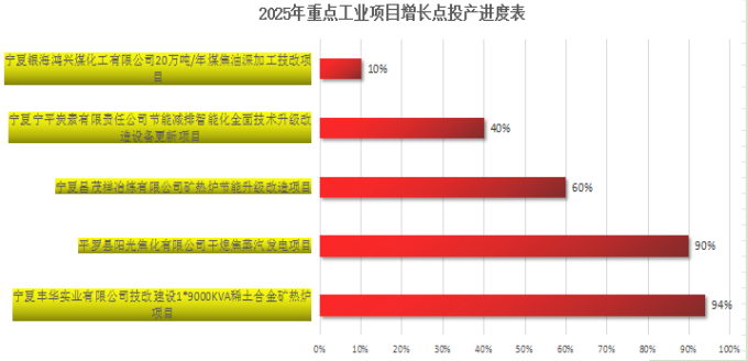 2025年,平罗县计划实施重点工业项目95个,计划总投资300.5亿元,年度计划投资68亿元,其中:新建项目26个,续建项目15个,技术改造项目54个。已开工项目65个,其中:新建项目14个、续建项目15个、技术改造项目36个。