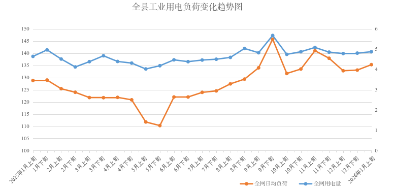 全网日均用电负荷135.28万千瓦,较12月中下旬上升2.24万千瓦,环比上升1.68%,同比上升5.05%;全网用电量4.87亿千瓦时,较12月中下旬上升0.07亿千瓦时,环比上升1.46%,同比上升4.96%。
